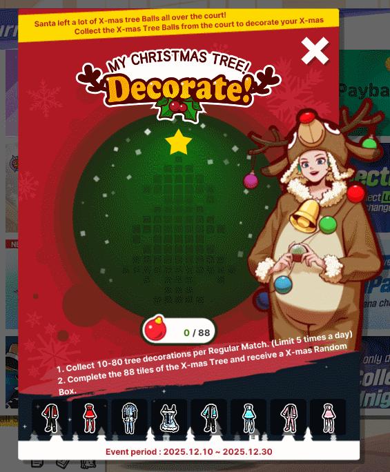 Assemble the festive spirit by completing the 88 tiles of the X-mas Tree.