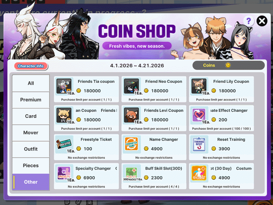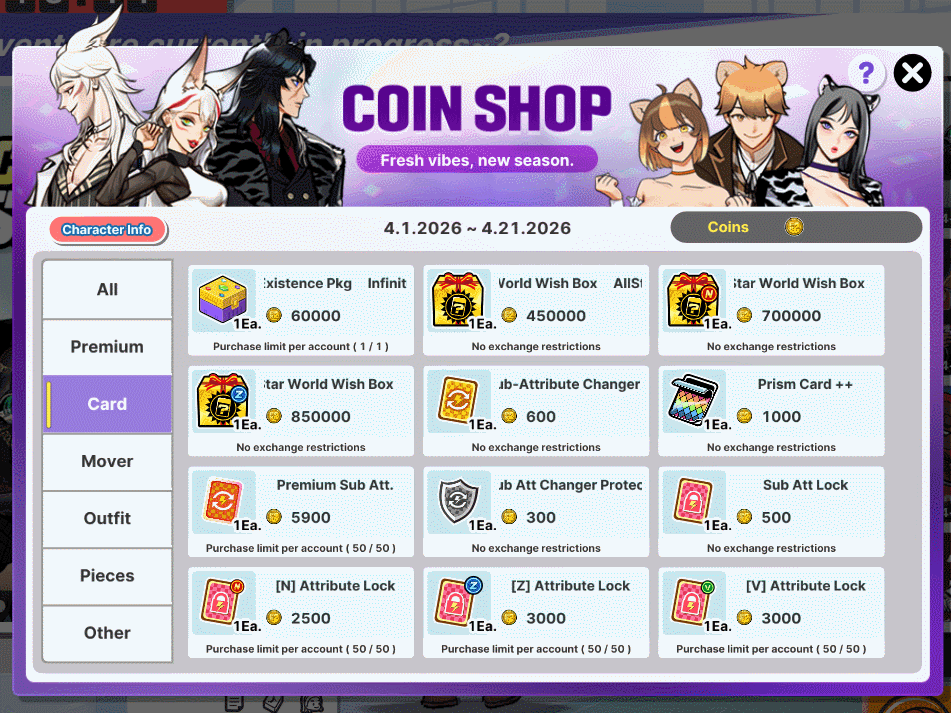 Link: https://freestyle2.joycitygames.com/news/notice/19710 1. Card Synthesis Content Update → You can obtain a new card by combining 5 cards. → You can obtain a specific desired attribute by using attribute materials → You can obtain a synthesis-exclusive card by synthesizing in play events or for sale. > Attribute Materials will be available in future events. List of items to be deleted and newly added during the scheduled → Existing card synthesis items have been removed. → Replaced with a new synthesis material item. → A synthesis-exclusive [MIX] card that can be obtained by synthesizing Notes: > [MIX] cards can only be obtained by synthesizing All-Star World grade cards. > [MIX] Cards cannot be used with Shuffle Cards, Card Option Change Items, or any Sub-Att Lock Tickets. > [MIX] Cards can only be obtained through card synthesis and are not available in play events or for sale . Jump in, stay sharp, and make every play count this April! Thank you for your continued support.