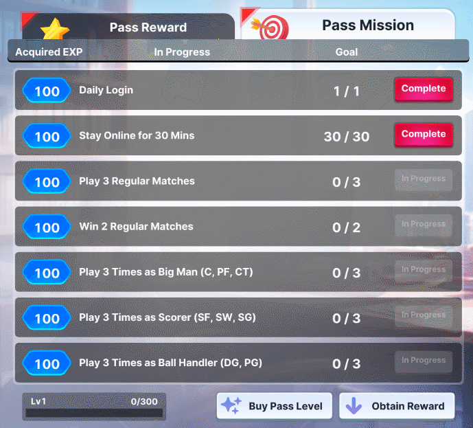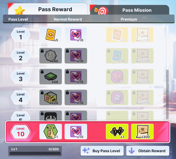 → Normal Rewards unlock as you gain EXP in every Pass Level.
