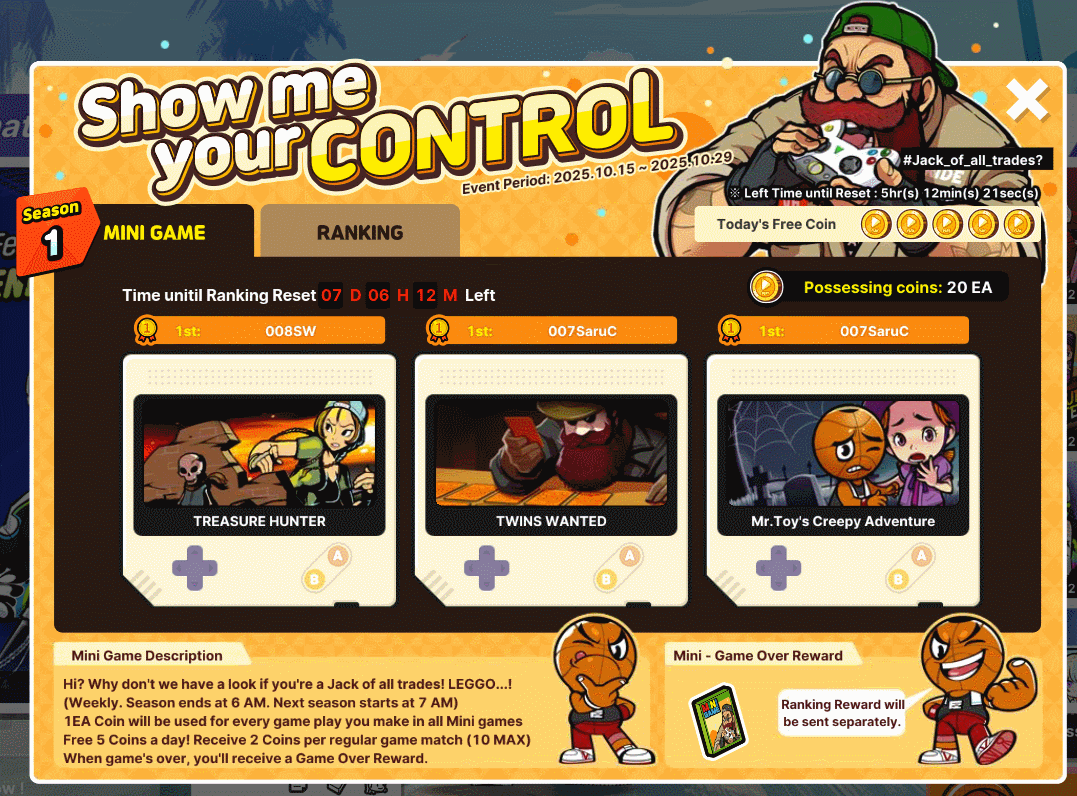 breather and unwind in our Mini-Game Event – Show Me Your Control!