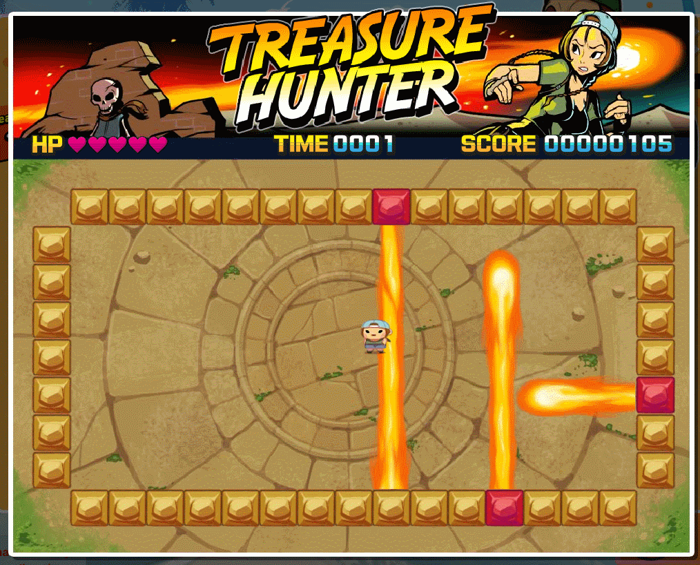 Treasure Hunter Dodge the blazing fire pillars and survive as long as you can!