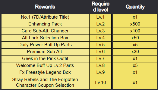 List of Main Stage Rewards