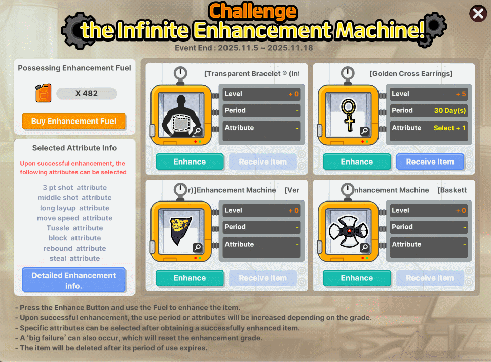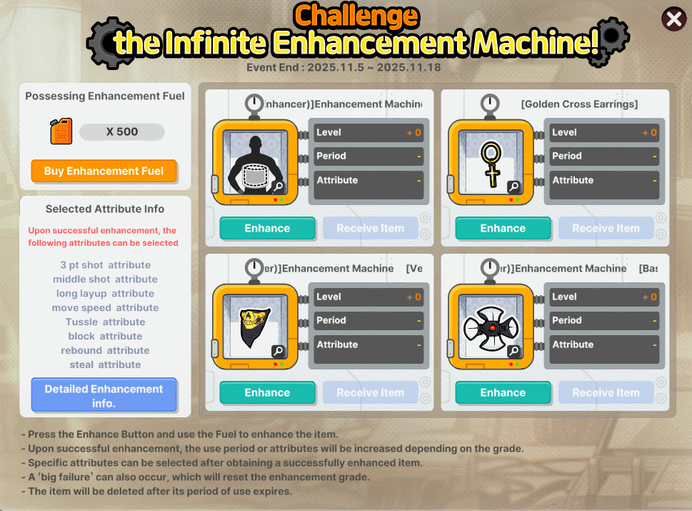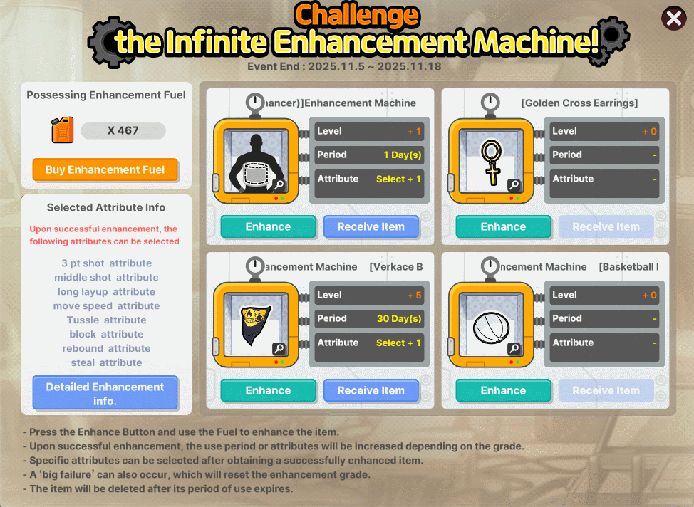 → Enhancement Fuel is required to enhance items. It can be purchased by