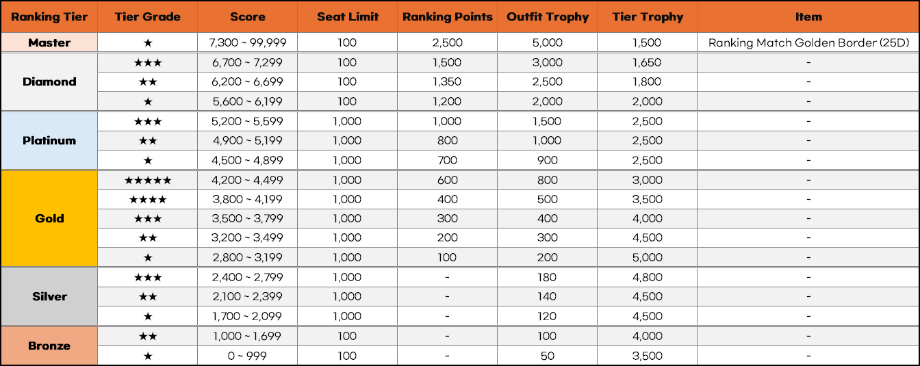 → Existing items in the Ranking Match Shop will be reduced, and new items