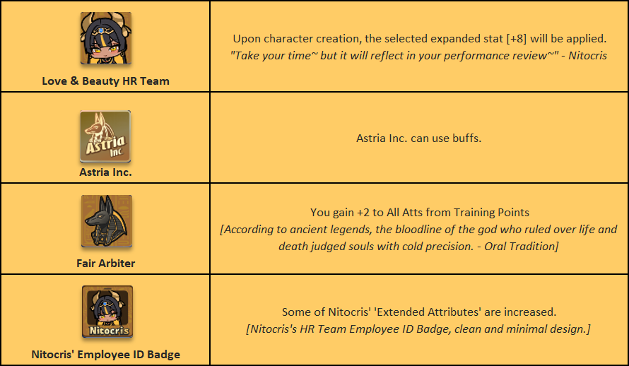 → Love & Beauty HR Team: Upon character creation, the selected