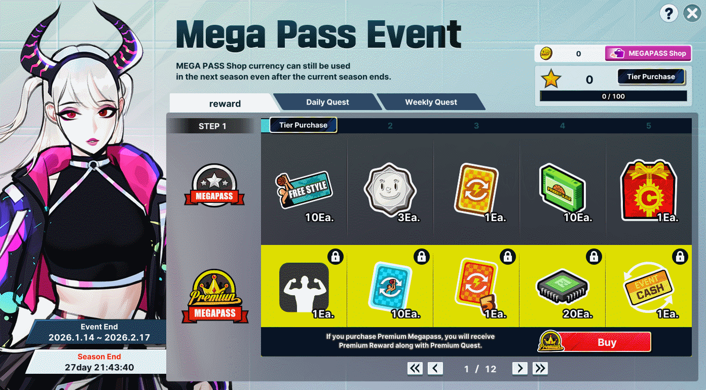 The Mega Pass consists of tiers for different levels.