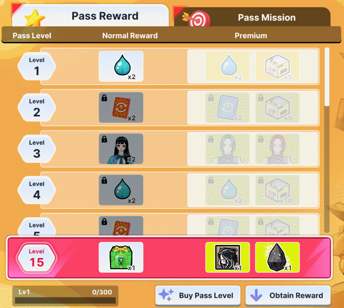 → Normal Rewards unlock as you gain EXP in every Pass Level.