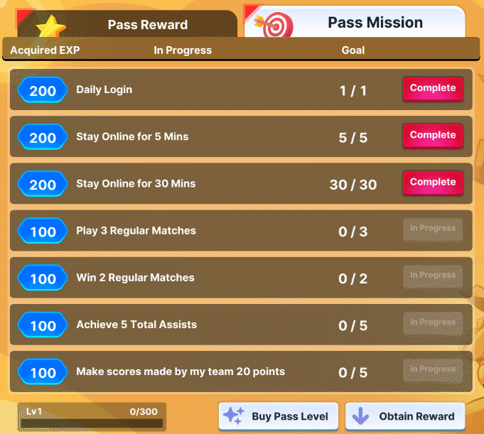 → Complete missions daily and earn EXP to level up your Pass!