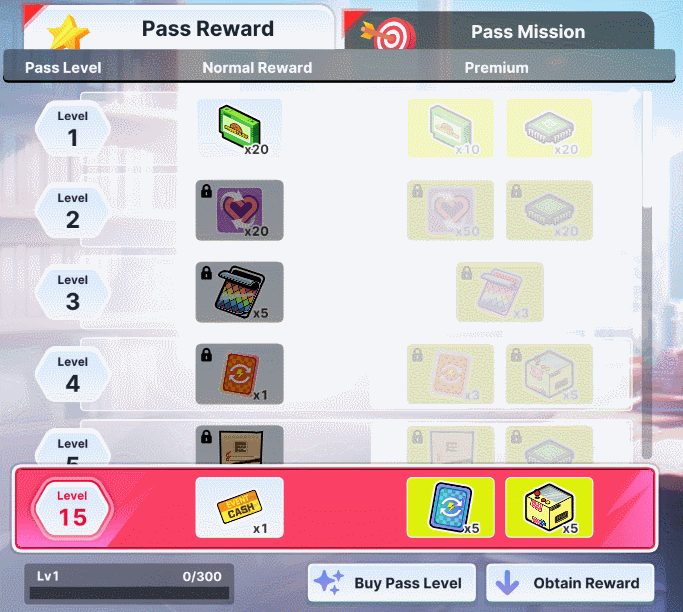 → Normal Rewards unlock as you gain EXP in every Pass Level.