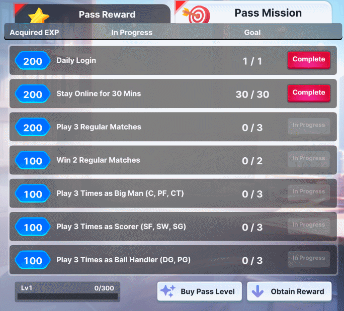 → Complete missions daily and earn EXP to level up your Pass!