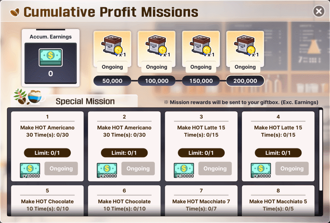 ~ Mission rewards will be sent to your Gift Box.