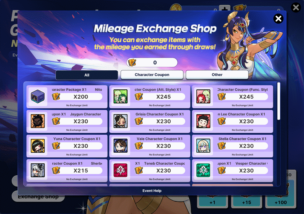[1] Use collected 'Evaluation Sheet' mileage to exchange items via the