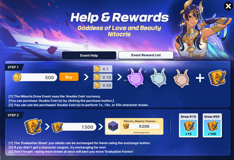 [1] The Nitocris_Majesty Draw Event uses Anubis Coins. Tap the [+] button