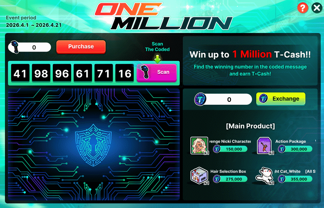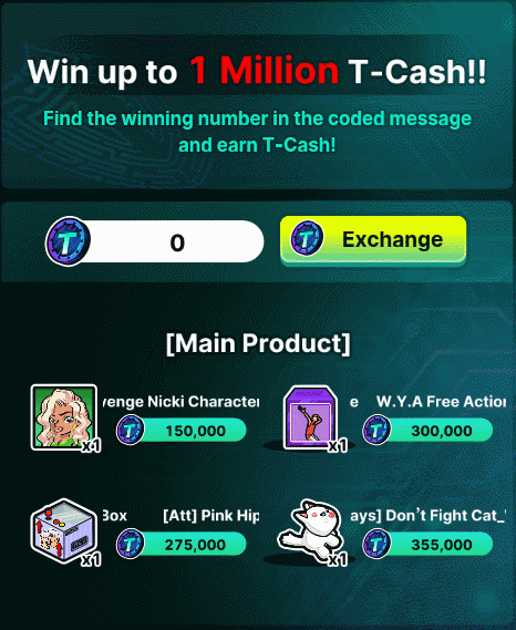 Unlock the thrill and seize the opportunity to win up to 1 million T-Cash prizes