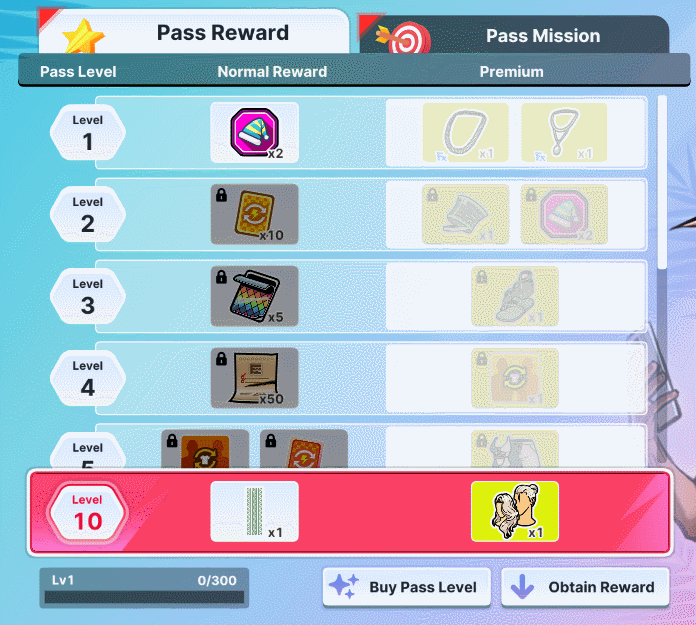 → Normal Rewards unlock as you gain EXP in every Pass Level.