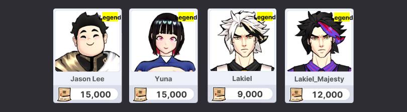 ‘Normal Character’, ‘Part Character’, ‘Advanced/Rare Character’, and