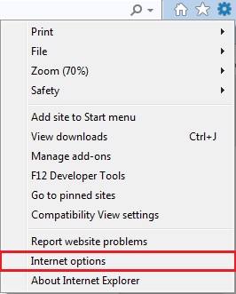1. Go to Internet Explorer > Settings then choose “Internet options”