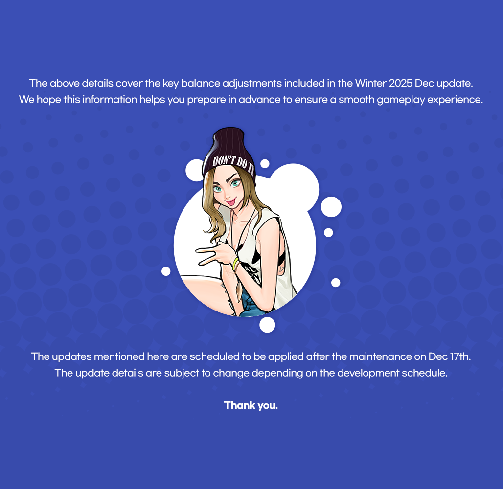 The upcoming Winter Balance Patch on December 17 (Wed) will introduce